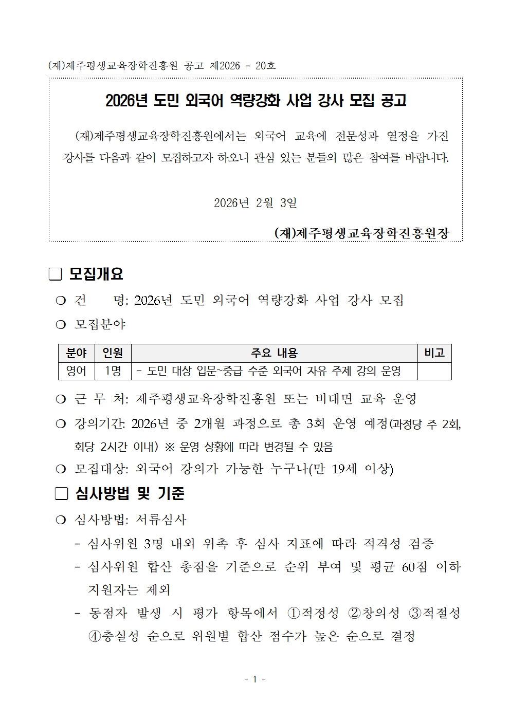 | 제 목 | 2026년 도민 외국어 역량강화 사업 강사 모집 공고 | ||