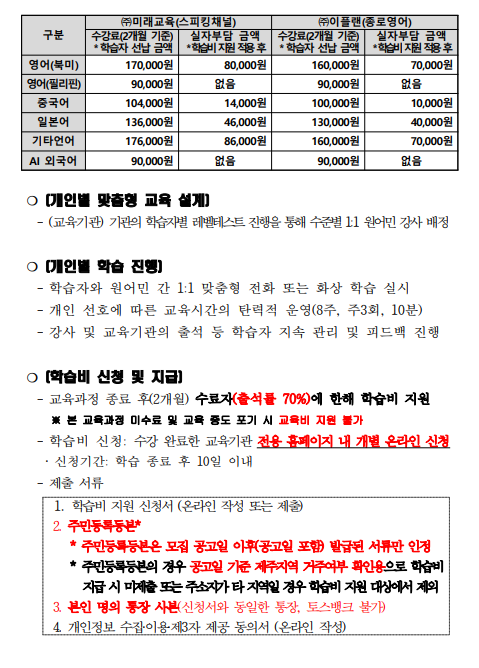 | 제 목 | 2026년 제주도민 외국어 학습비 지원 전화 화상 외국어교육 학습비 지원 제2기(4~5월) 학습자 선정 결과 안내 | ||
