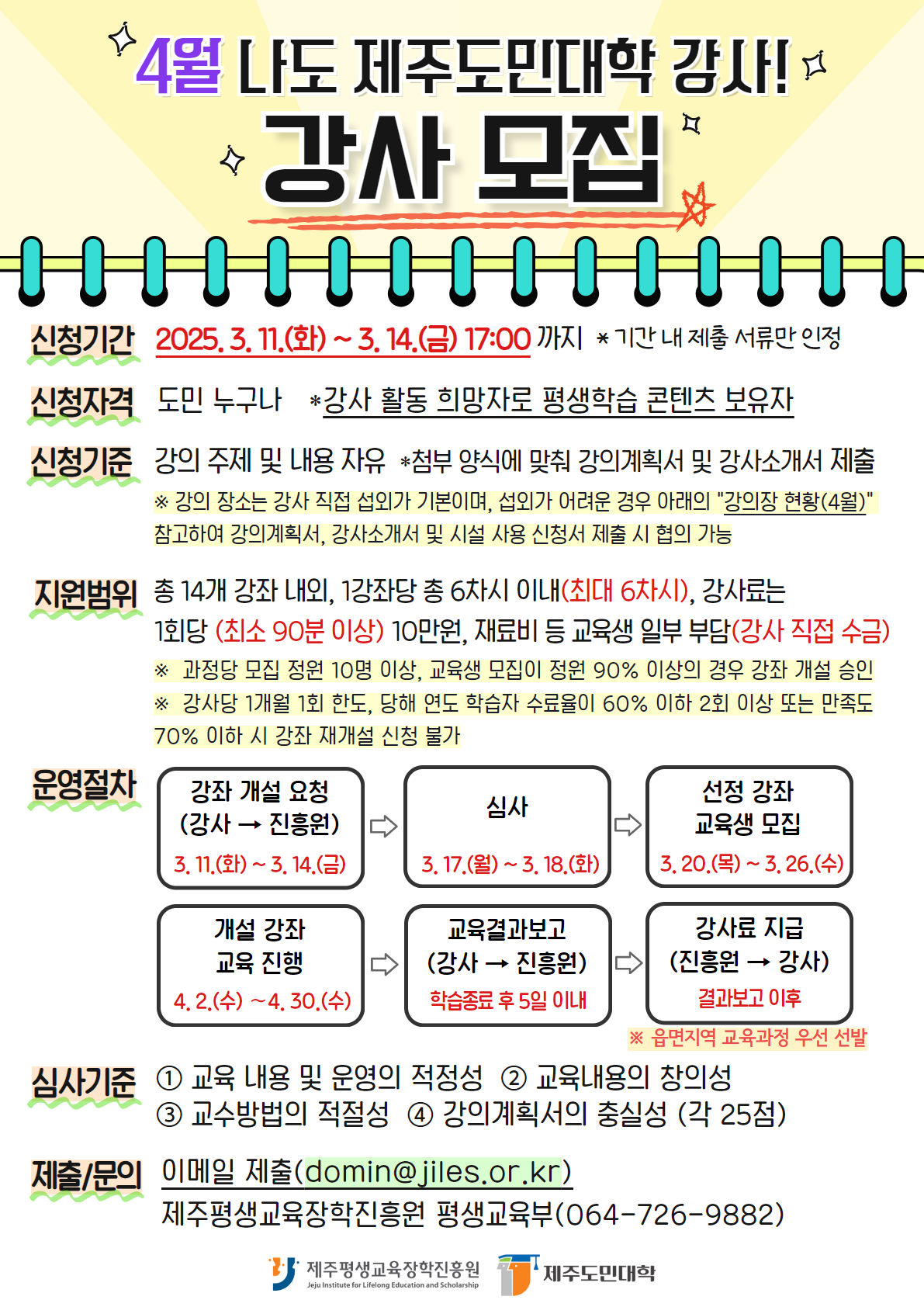 제주도민대학에서 4월 「나도 제주도민대학 강사!」 교육과정 도민 강사를 모집합니다.