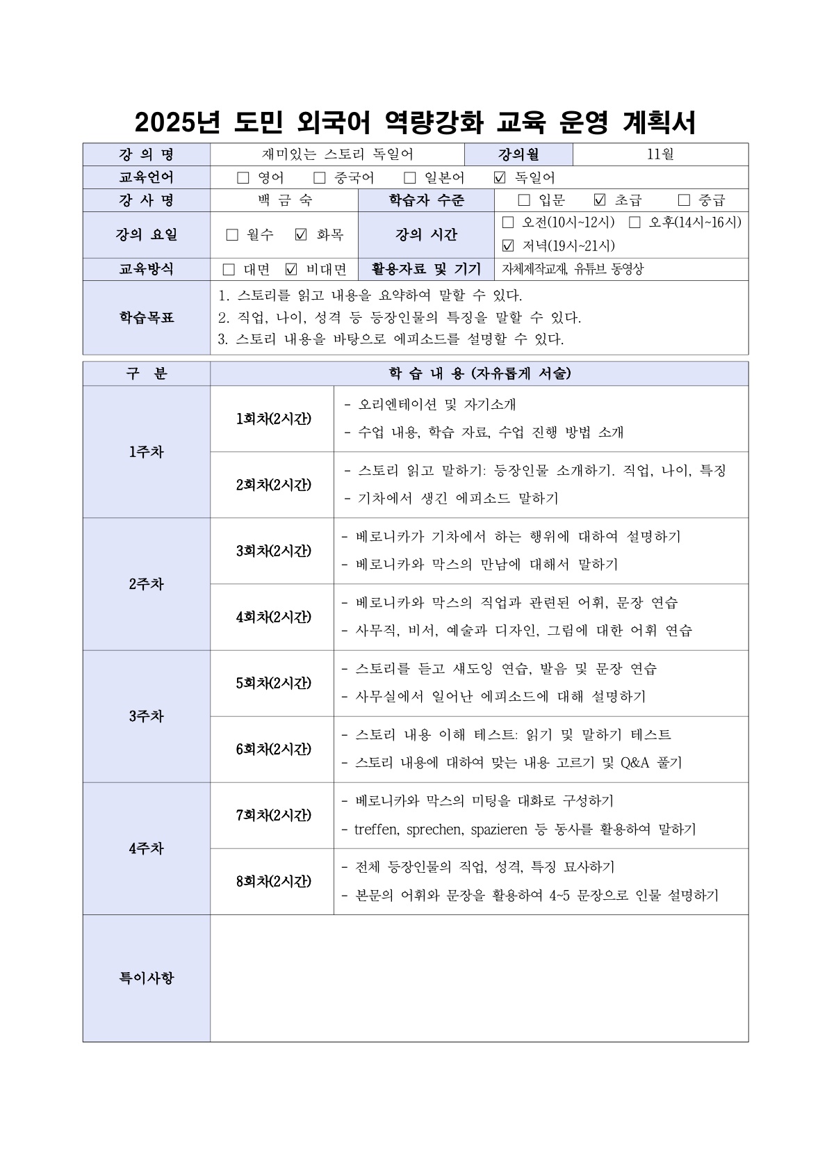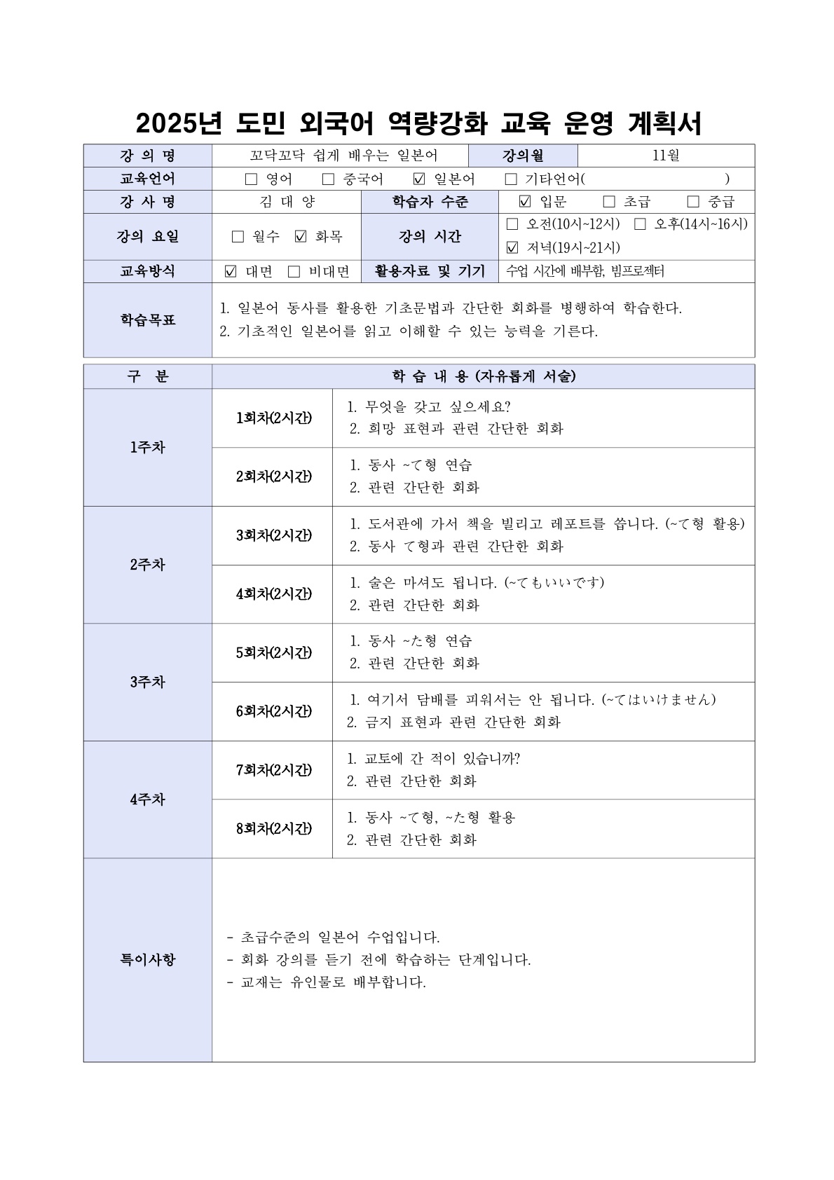 2025년 특정 주제 또는 분야별 외국어 교육과정 신청 바로가기 ↓↓↓↓↓↓