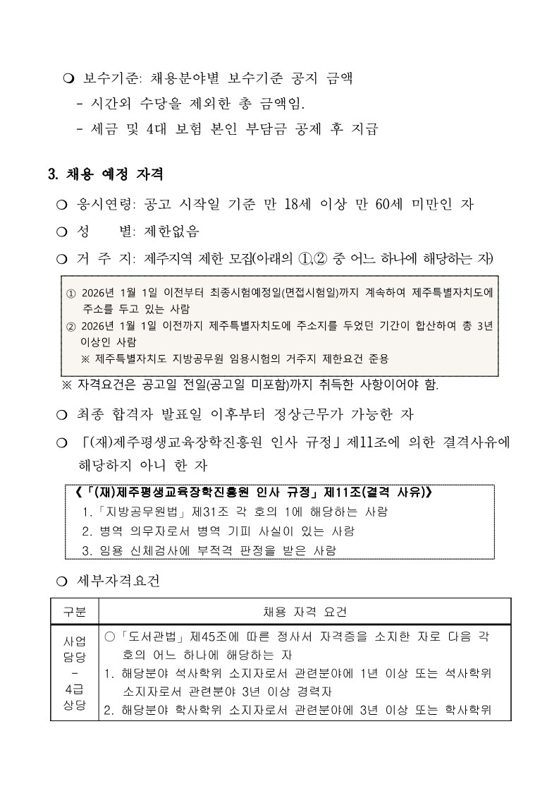 | 제 목 | 2026년 제주꿈바당어린이도서관 운영인력(기간제근로자) 공개채용 계획 재공고 | ||