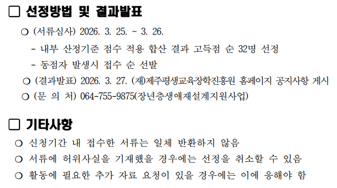 *(신청대상) 모집공고일 기준 만50~64세(1961. 3. 11. ~ 1976. 3. 10.), 제주도민 *(사업근거) 제주특별자치도 중장년지원에 관한 조례 6조 *본 모집은 선착순 선정이 아니며, 선발자는 3월 27일 공고 예정입니다.