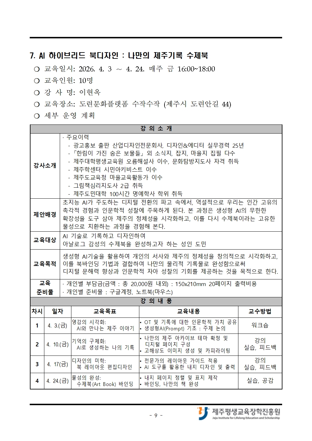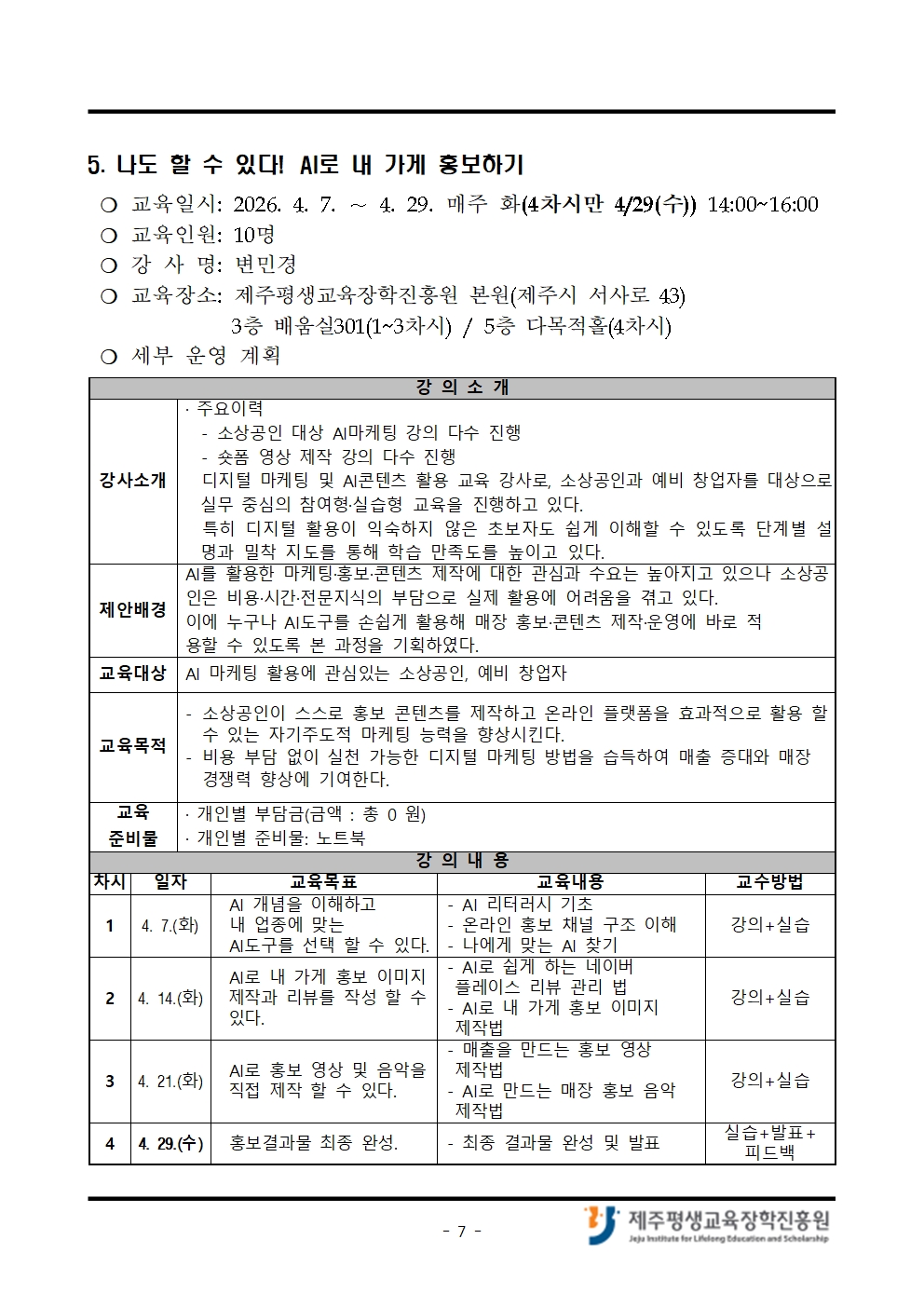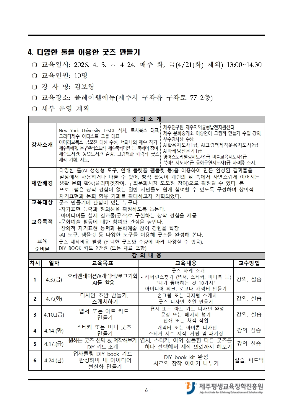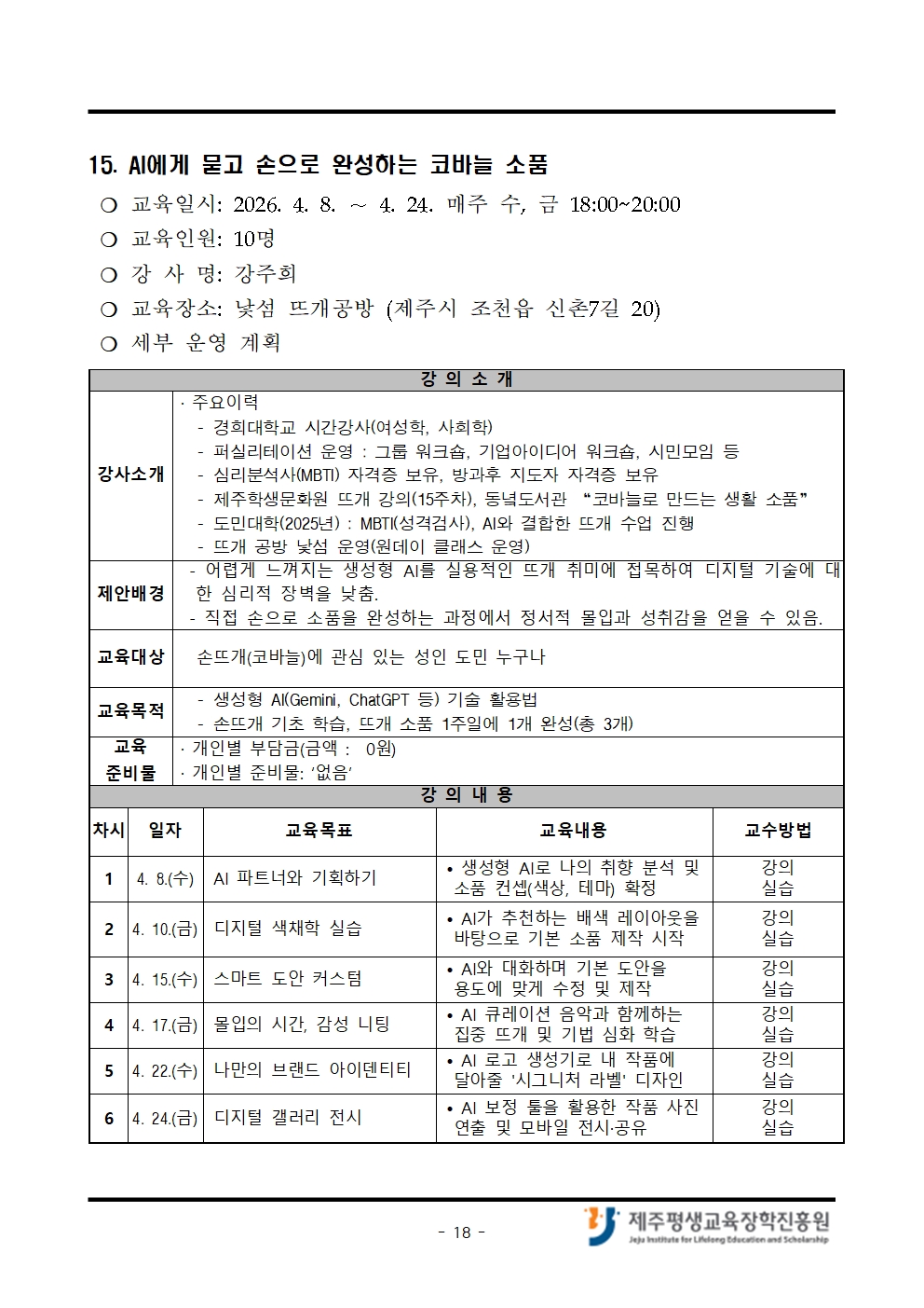 4월 「나도 제주도민대학 강사!」 교육생 모집