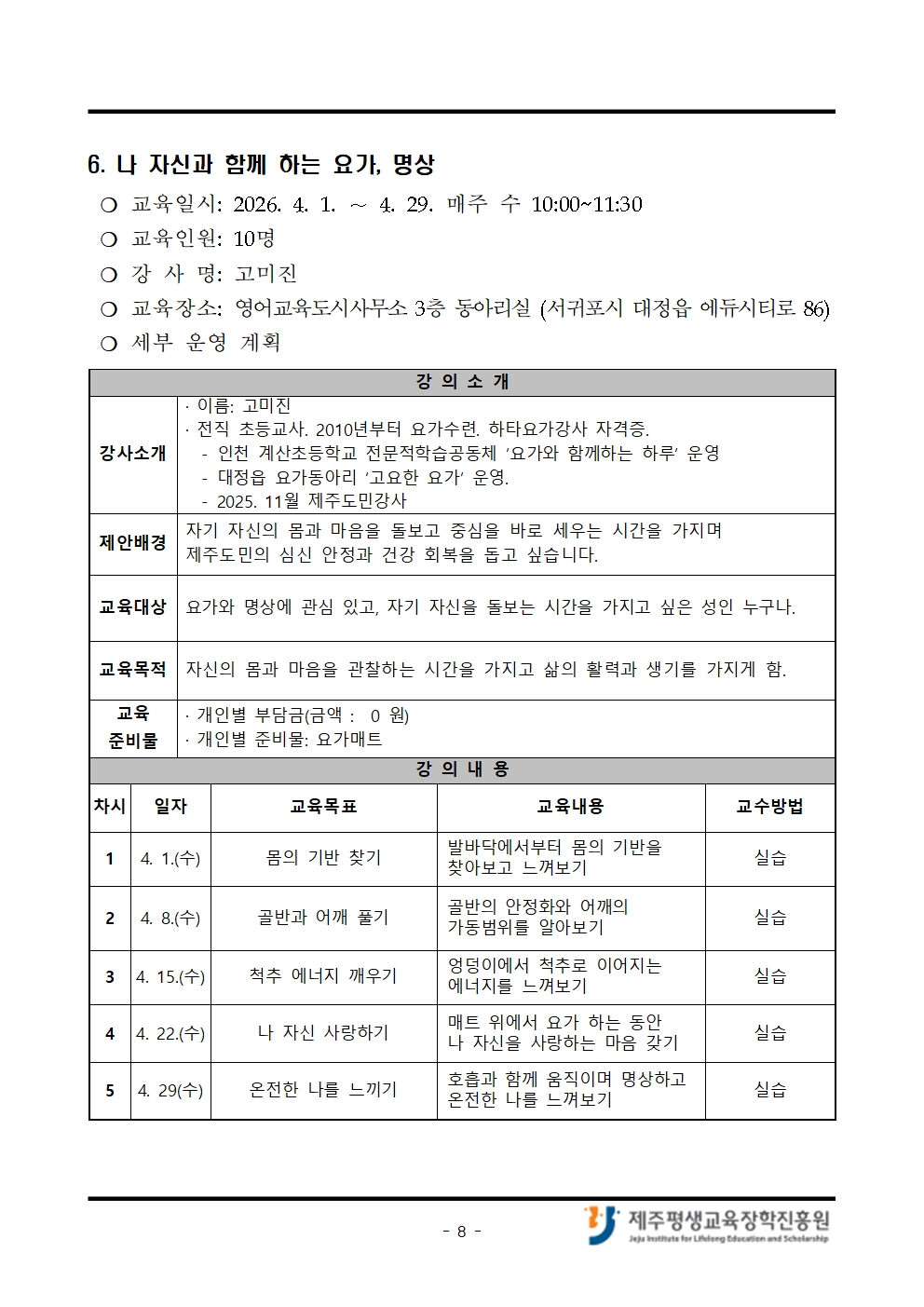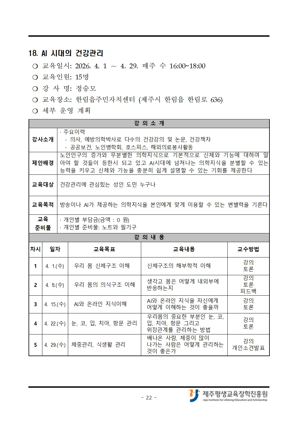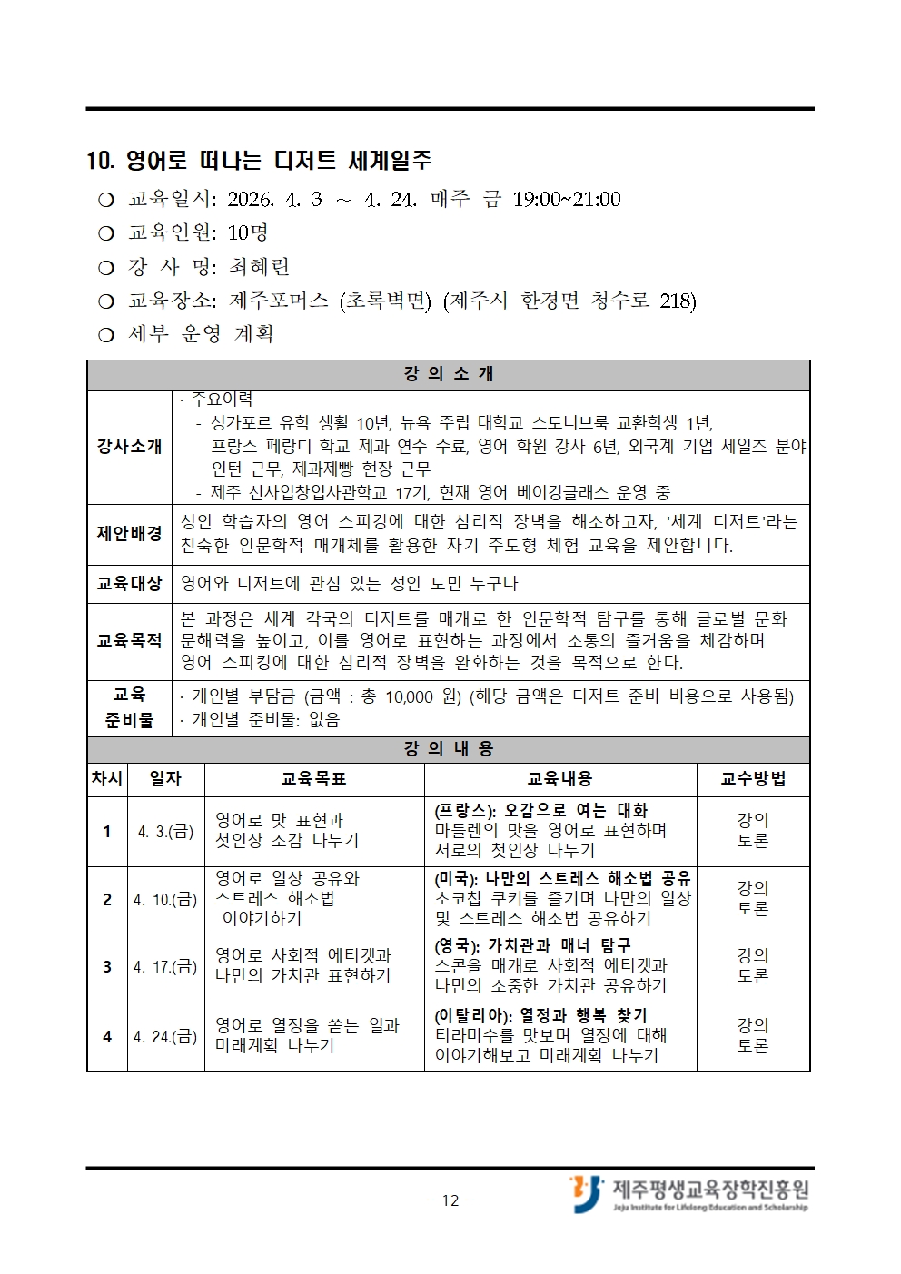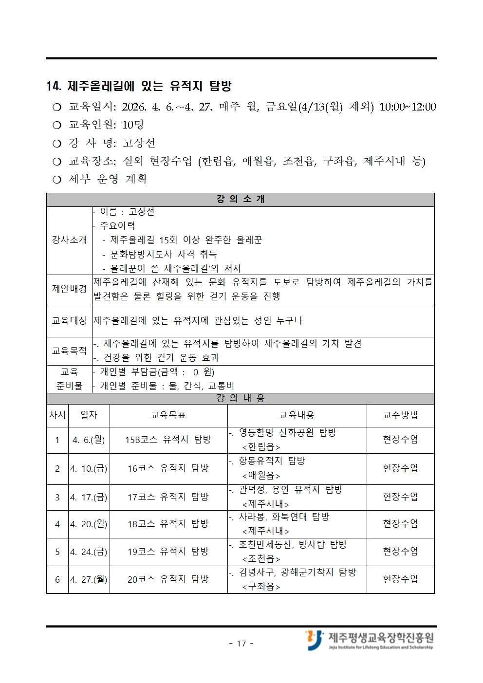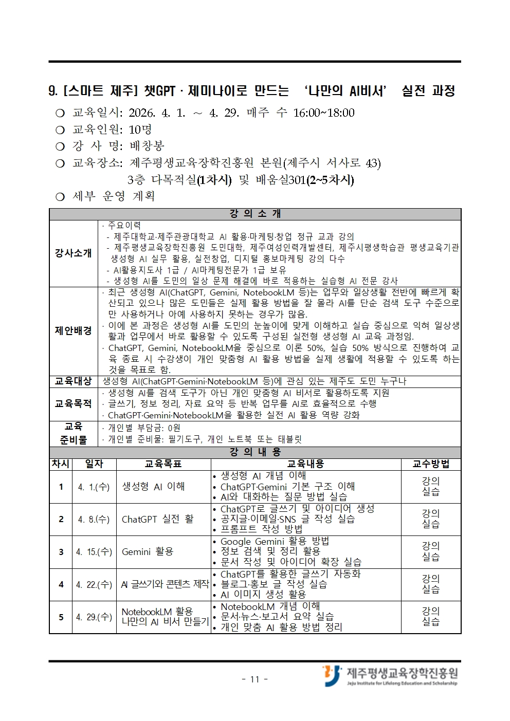 4월 「나도 제주도민대학 강사!」 교육생 모집