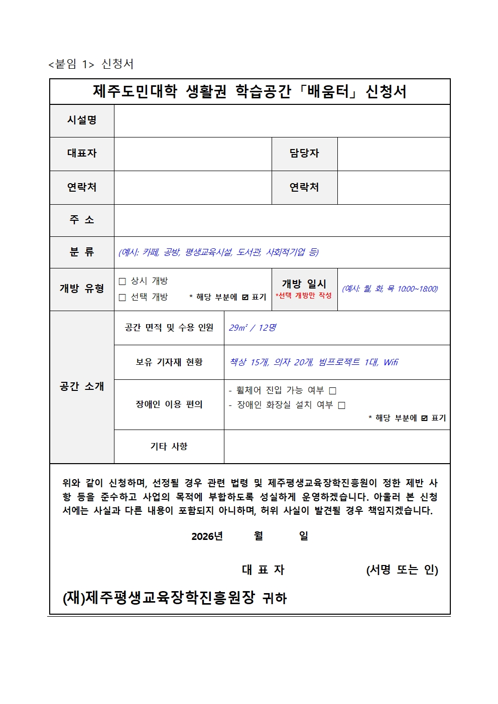 2026년 제주도민대학 생활권 학습공간 「배움터」 모집