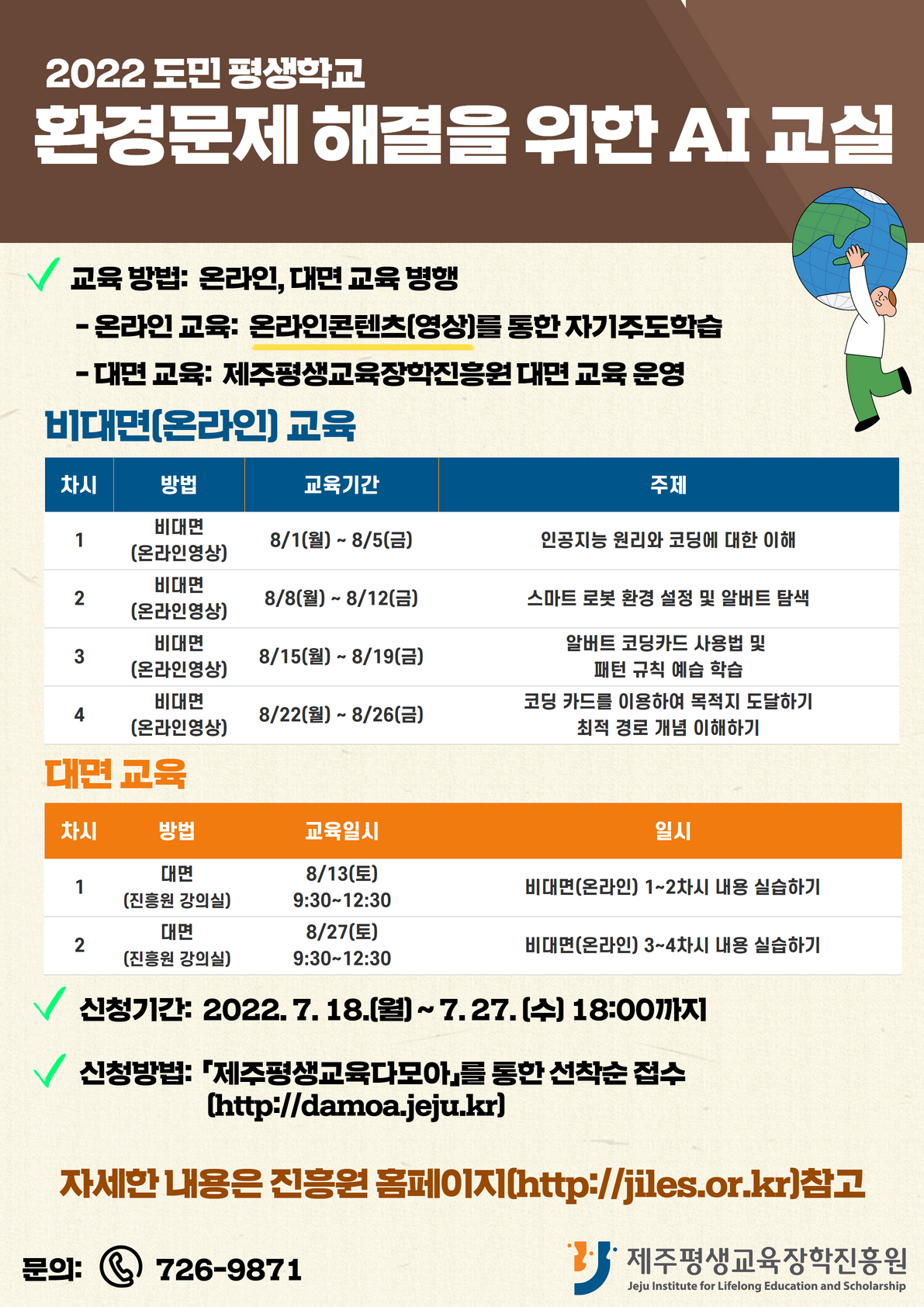 2022년 도민 평생학교 8월「환경문제 해결을 위한 AI교실」교육생을 모집합니다 |