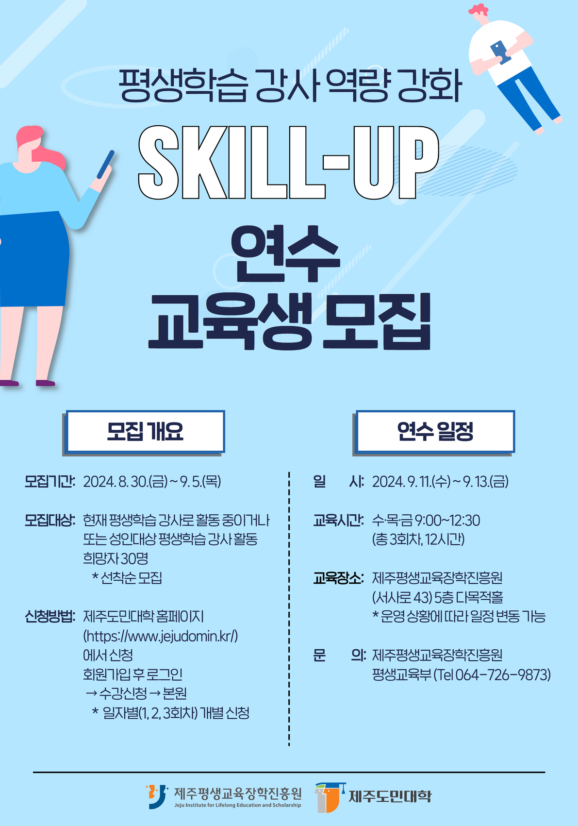 | 제 목 | 2024년 제주도민대학 「평생학습 강사 역량 강화 Skill-Up 연수」교육생 모집 | ||