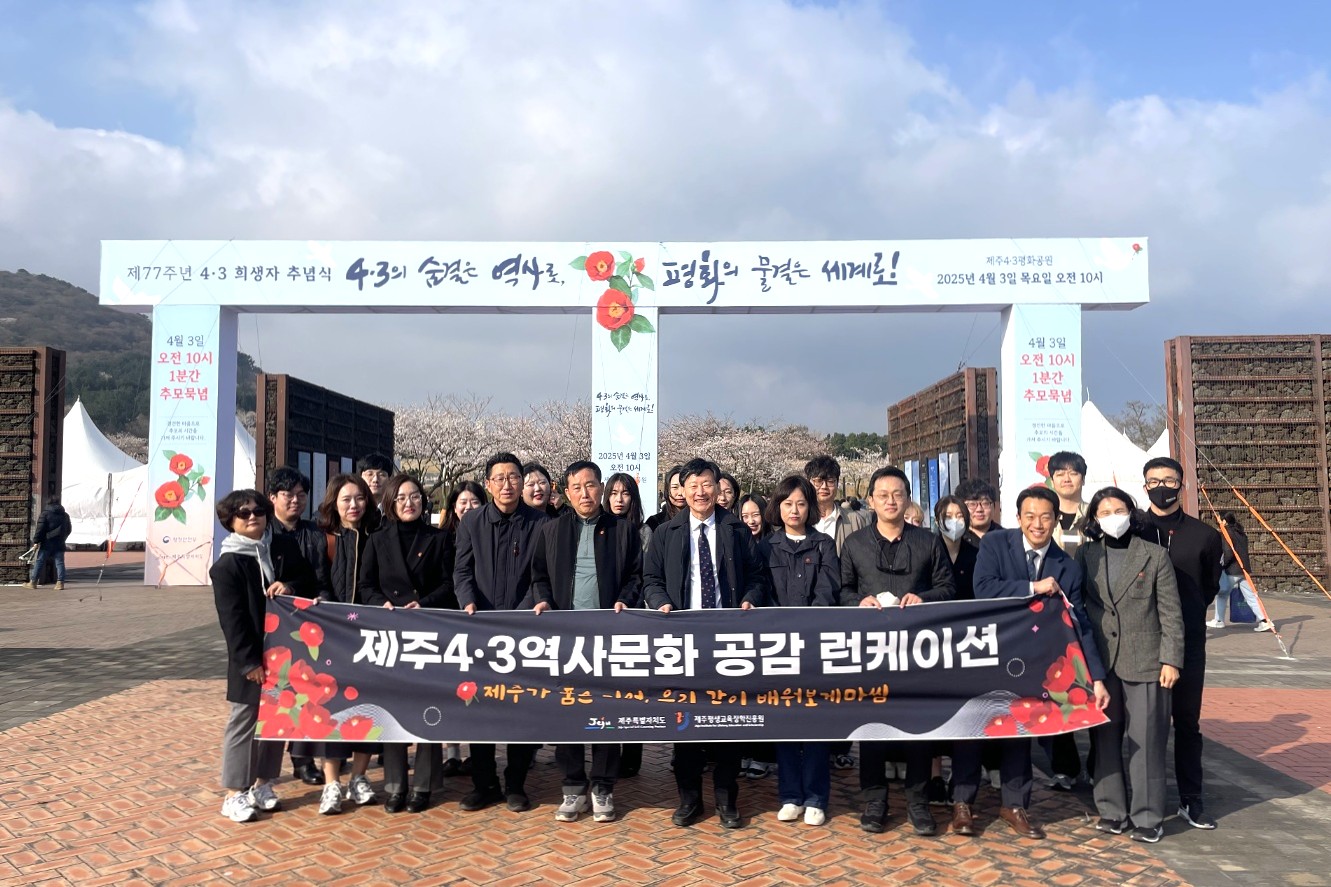 【호남·제주 평생교육진흥원협의회와 함께하는 제주역사 공감 런케이션】 - 일시: 2025. 4. 3.(목) 09:00~14:00 - 장소: 제주4·3평화공원 등 - 참여대상: 호남·제주 평생교육진흥원 기관 및 임직원 등 - 내용: 제77주년 4·3희생자 추념식 참석 등 |