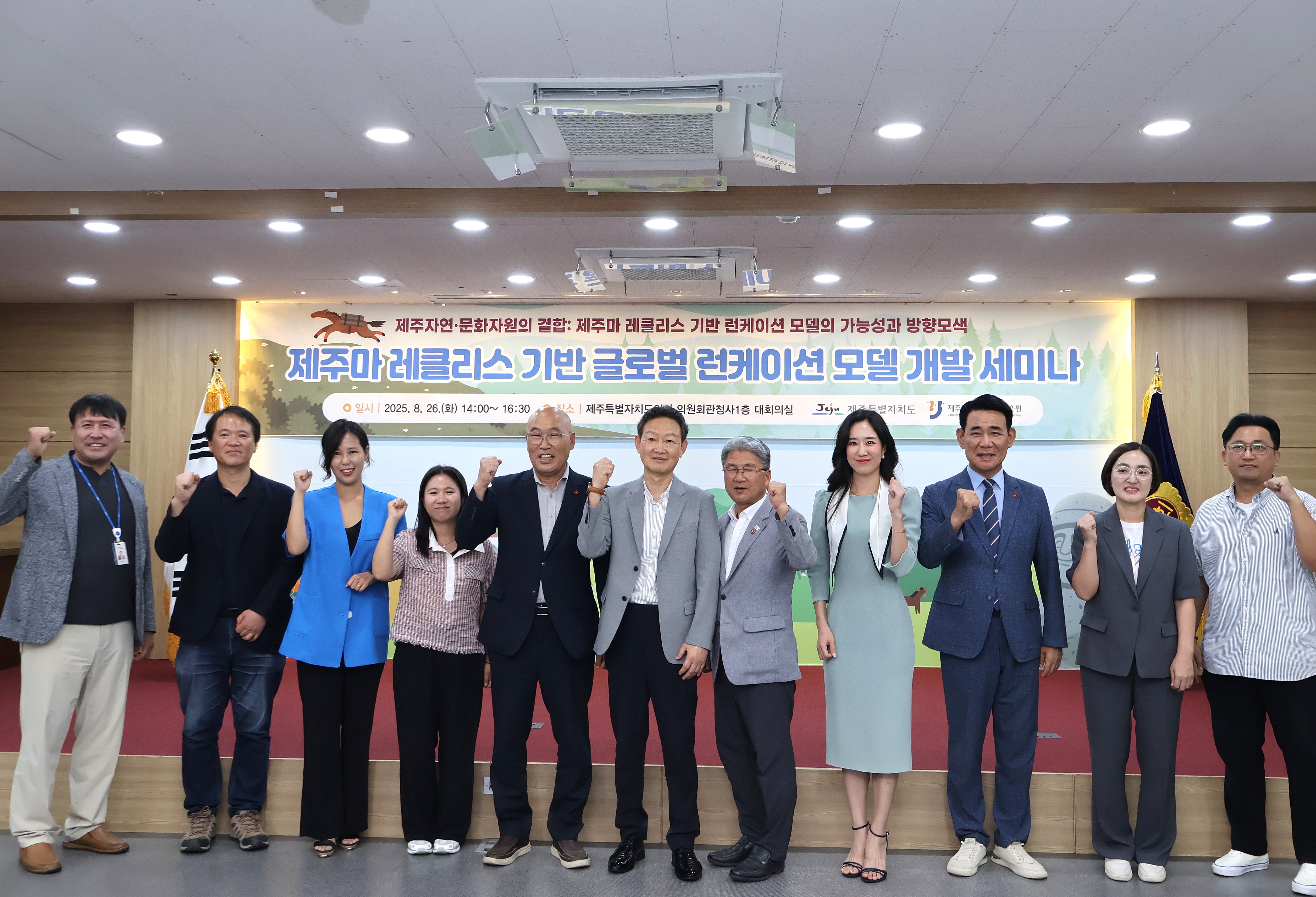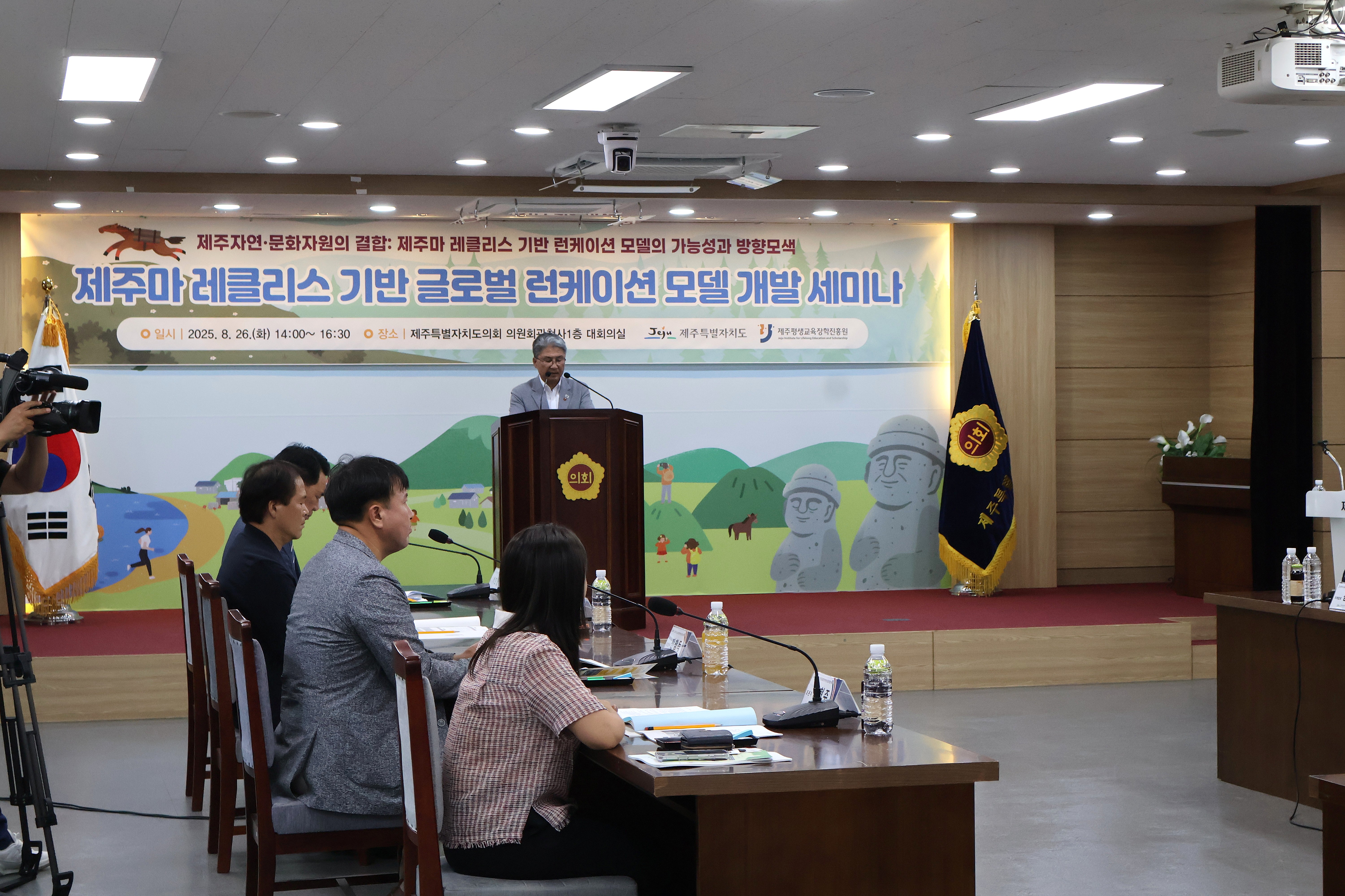 ○ (일시) 2025. 8. 26.(화) 14:00~16:30 ○ (장소) 제주특별자치도의회 의원회관청사 1층, 대회의실 ○ (주제) 제주 자연·문화 자원의 결합 : 제주마 레클리스 기반 런케이션 모델의 가능성과 방향 모색 |