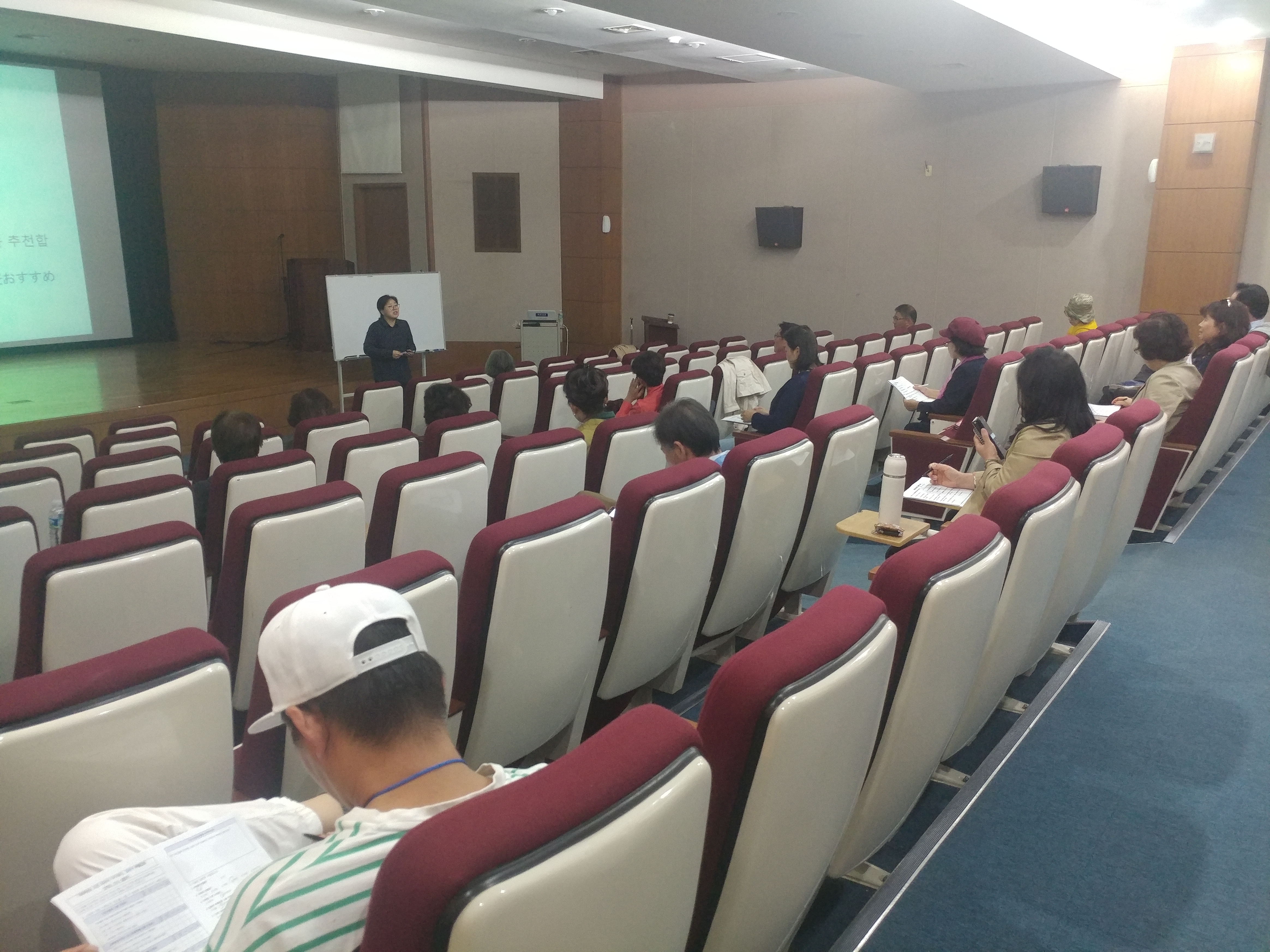 <서귀포시관광협의회 관광도슨트 일본어 특별강좌> 모습 2 - 일 시 : 2019. 10. 25(금) 16:00 ~ 18:00 - 장 소 : 감귤박물관 영상강의실 - 참여인원 : 서귀포시관광협의회 관광도슨트 19명 - 주요내용 : 실용 일본어 회화 기초