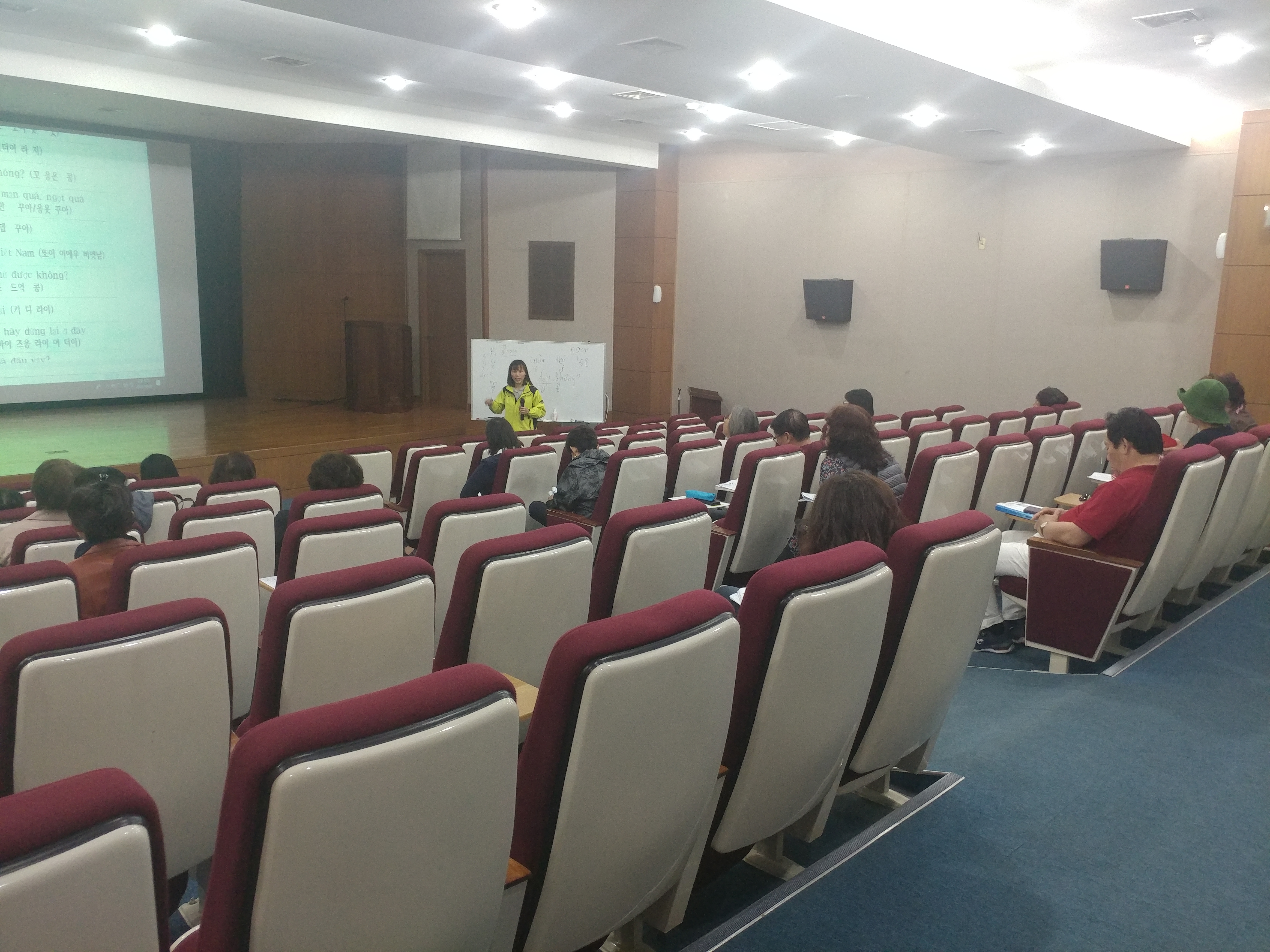 <서귀포시관광협의회 관광도슨트 베트남어 특별강좌> 모습 2 - 일 시 : 2019. 10. 28(월) 16:00 ~ 18:00 - 장 소 : 감귤박물관 영상강의실 - 참여인원 : 서귀포시관광협의회 관광도슨트 20명 - 주요내용 : 실용 베트남어 회화 기초