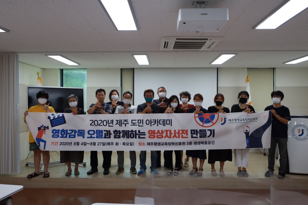 - 일시 : 2020년 8월 27일(목) 14:00 ~ 16:00 - 장소 : 제주평생교육장학진흥원 2층 평생배움공간 - 내용: [영화감독 오멸과 함께하는 영상자서전 만들기] 수료식 및 영상자서전 상영회 |