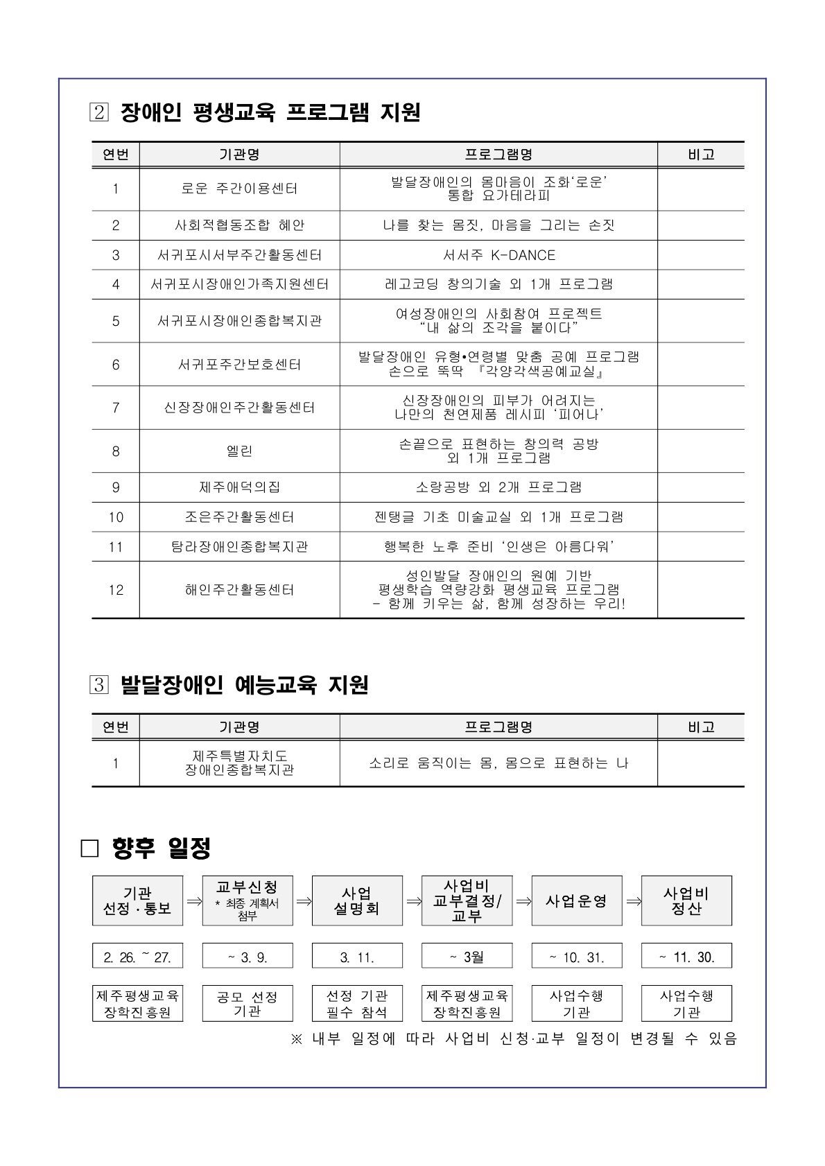 | 제 목 | 제주특별자치도 2026년 장애인 평생교육 지원 사업 선정 결과 안내 | ||