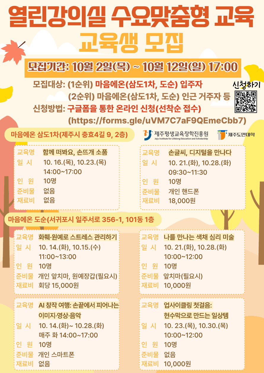 10월 열린강의실 수요맞춤형 교육 수강생 모집