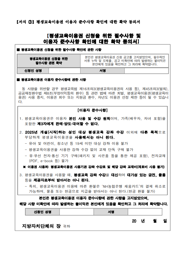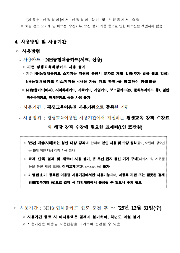 2025년 평생교육이용권 우수이용자 신청접수 공고