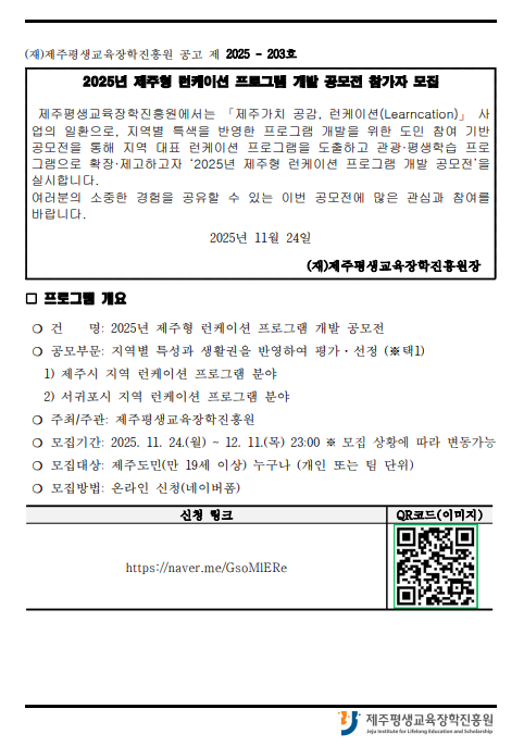 2025년 제주형 런케이션 프로그램 개발 공모전.pdf (285 KBytes)