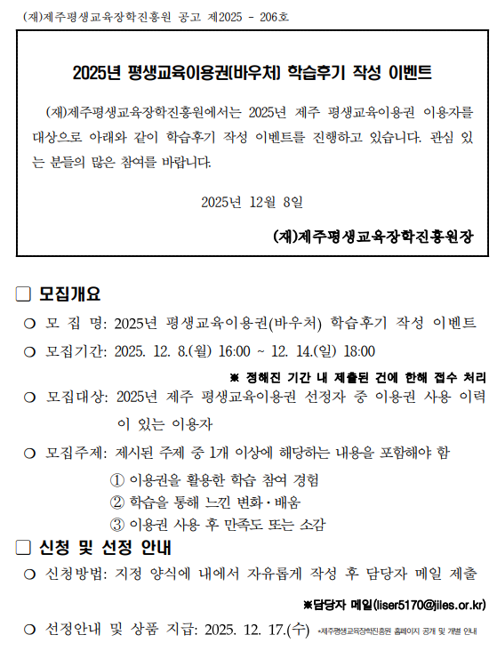 2025년 평생교육이용권(바우처) 학습후기 작성 이벤트