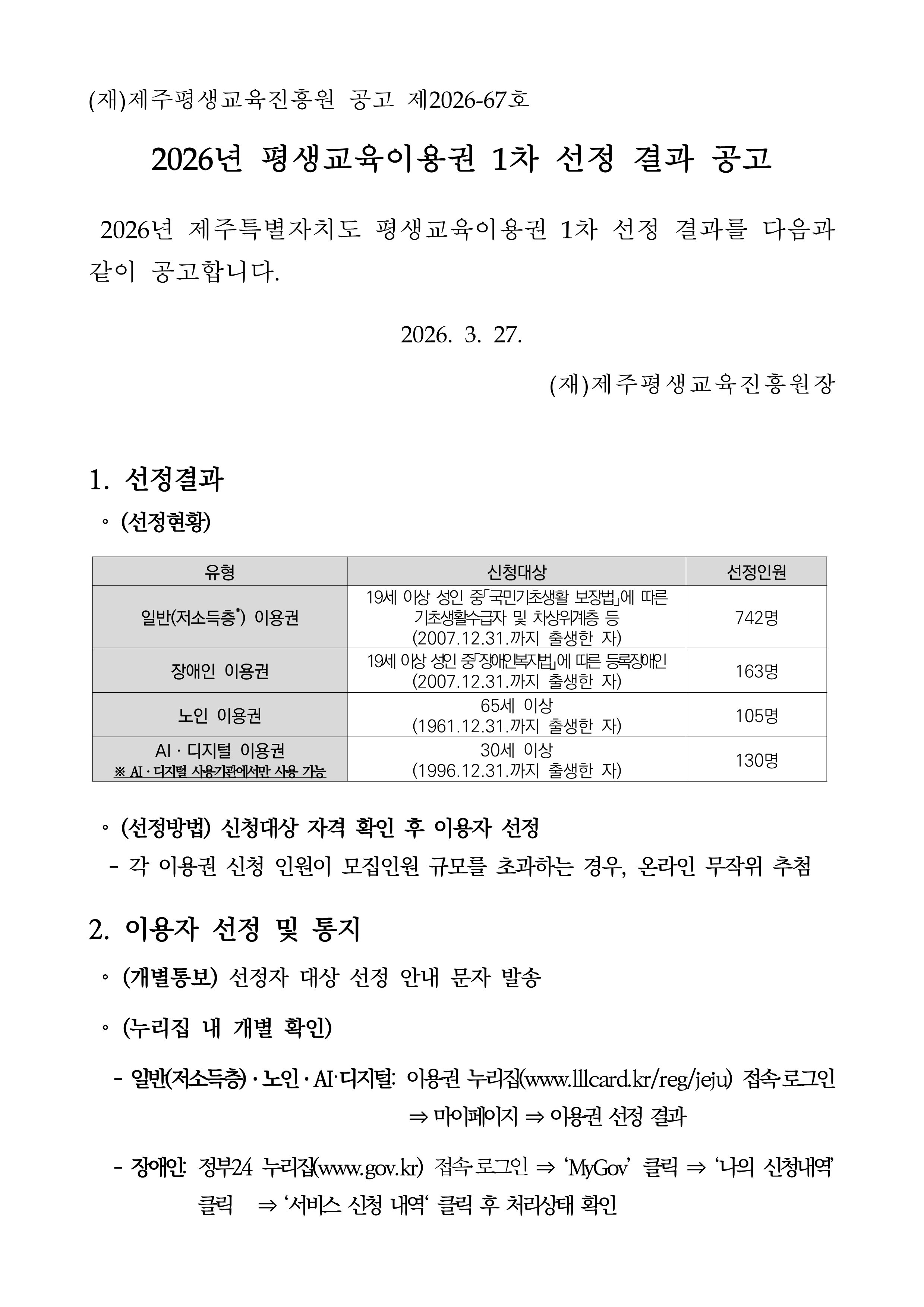 2026년 평생교육이용권 1차 선정결과 공고(20260327).pdf (228 KBytes)