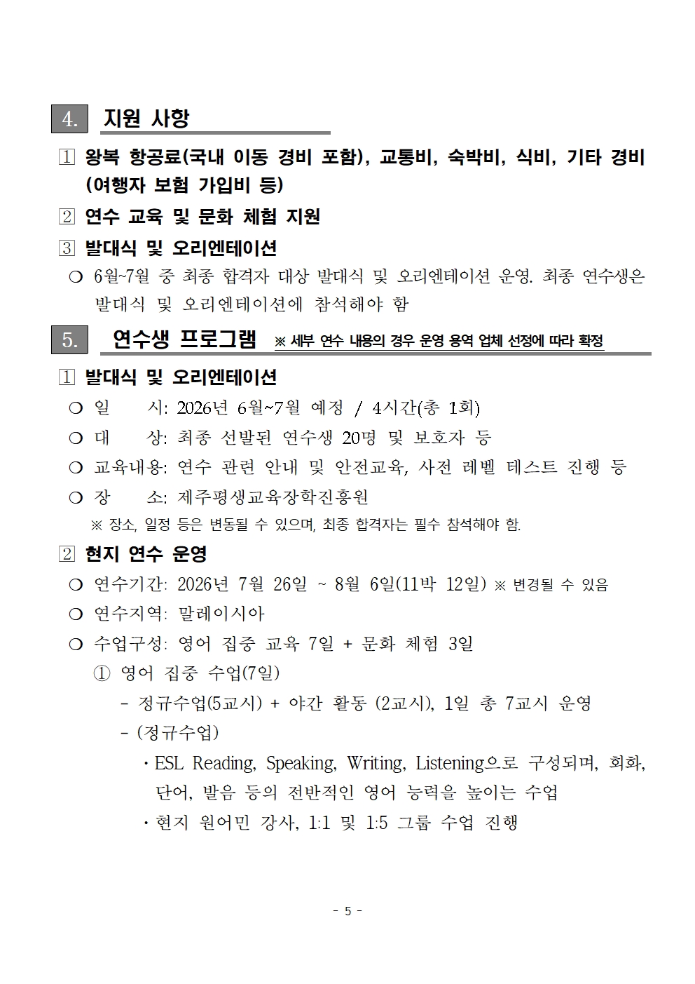 2026년 제주 청소년 글로벌 영어 탐험 캠프 연수생 모집 공고