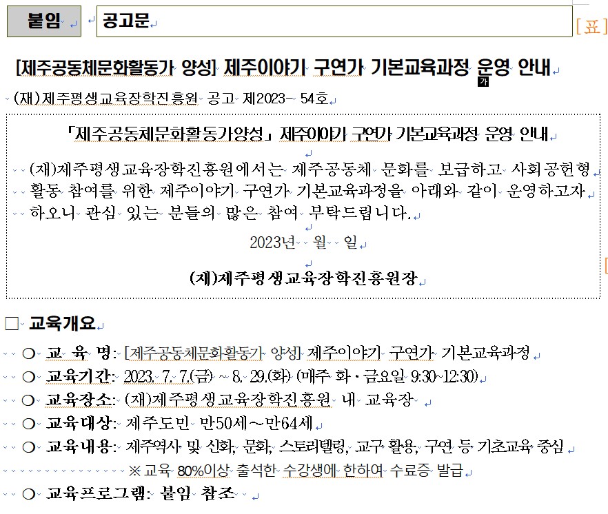 | 제 목 | 2023년 [제주공동체문화활동가 양성] 제주이야기구연가 기본교육과정 교육생 모집 | ||
