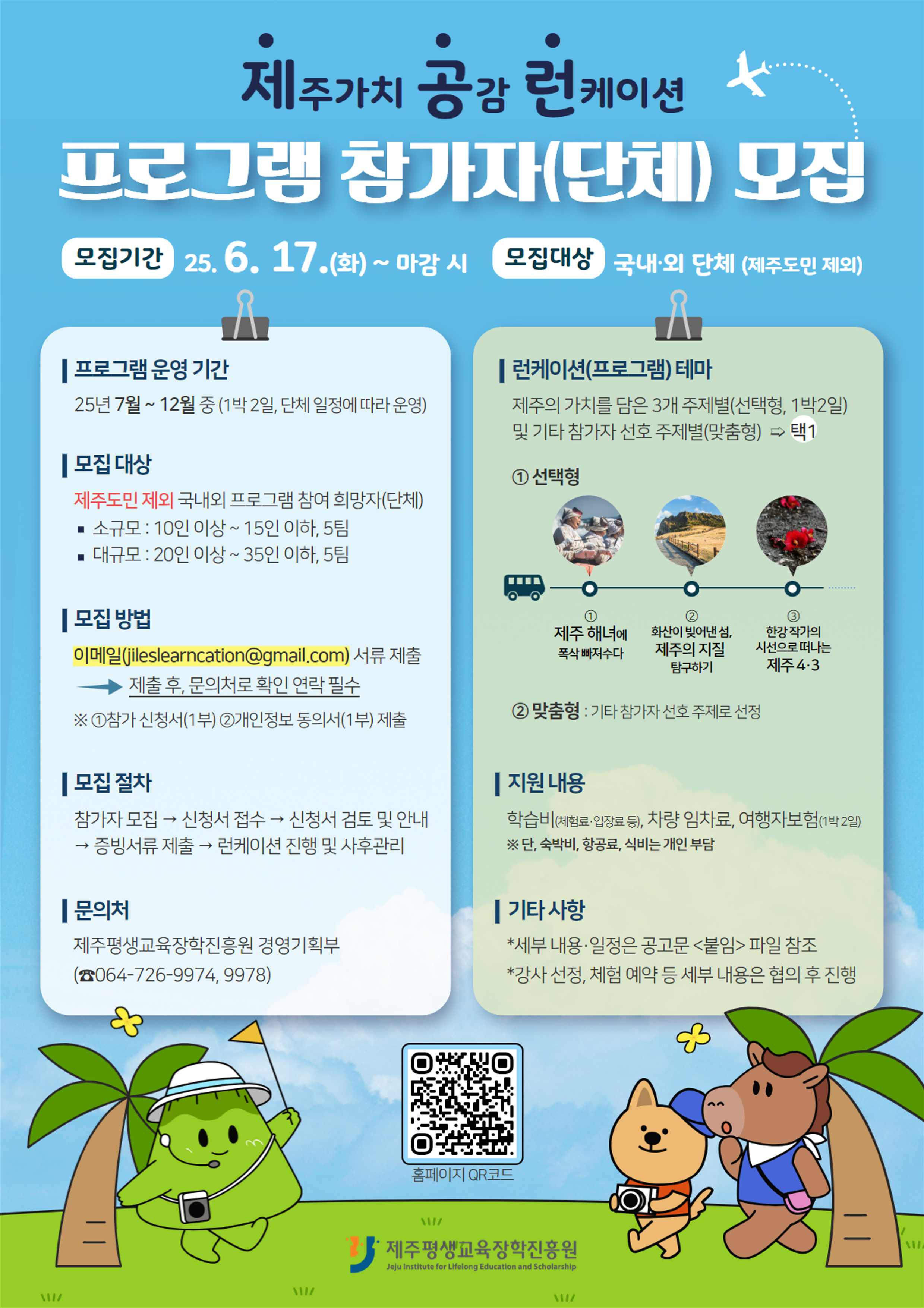 | 제 목 | 2025년 제주가치, 공감 런케이션(learncation) 프로그램 참가자(단체) 모집 안내 | ||