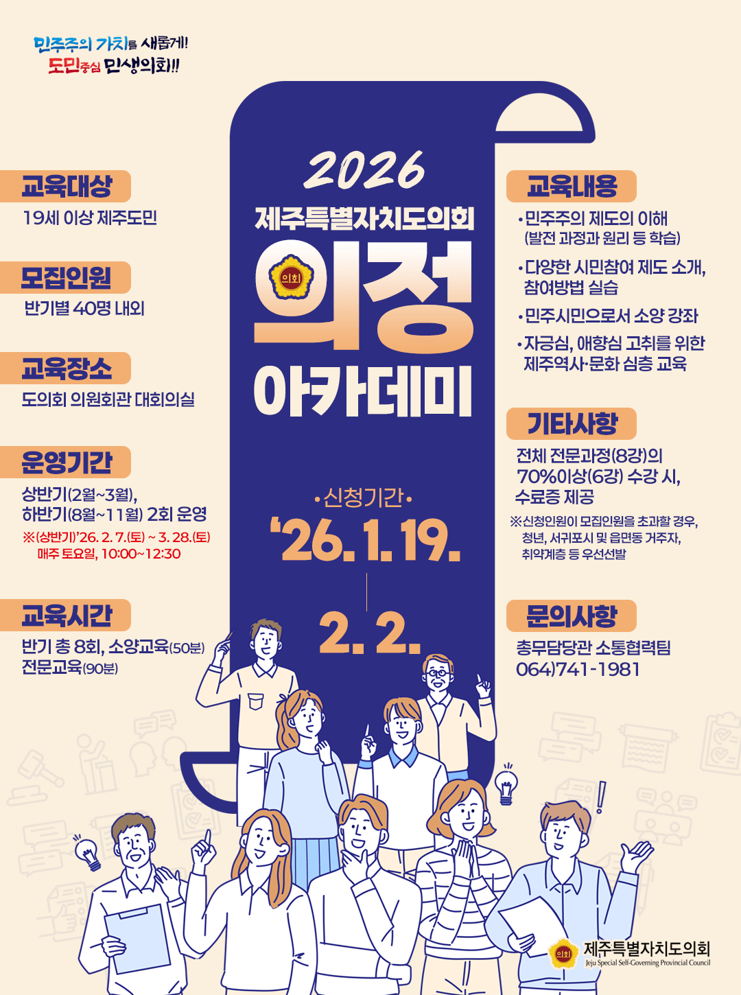 2026년 상반기 제주특별자치도의회 의정 아카데미 신청자 모집 안내