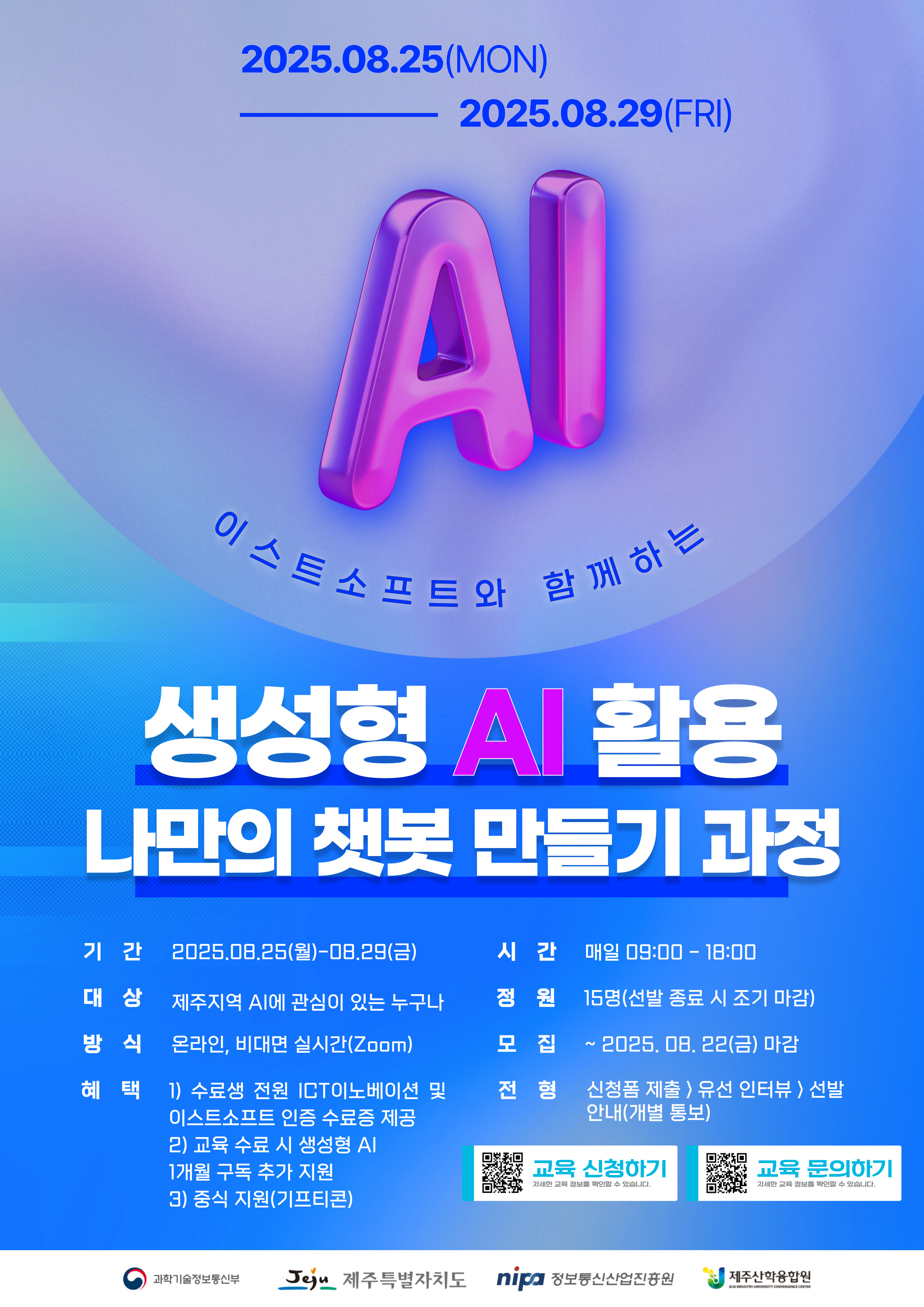 제주산학융합원 AI 챗봇 구현 교육 안내
