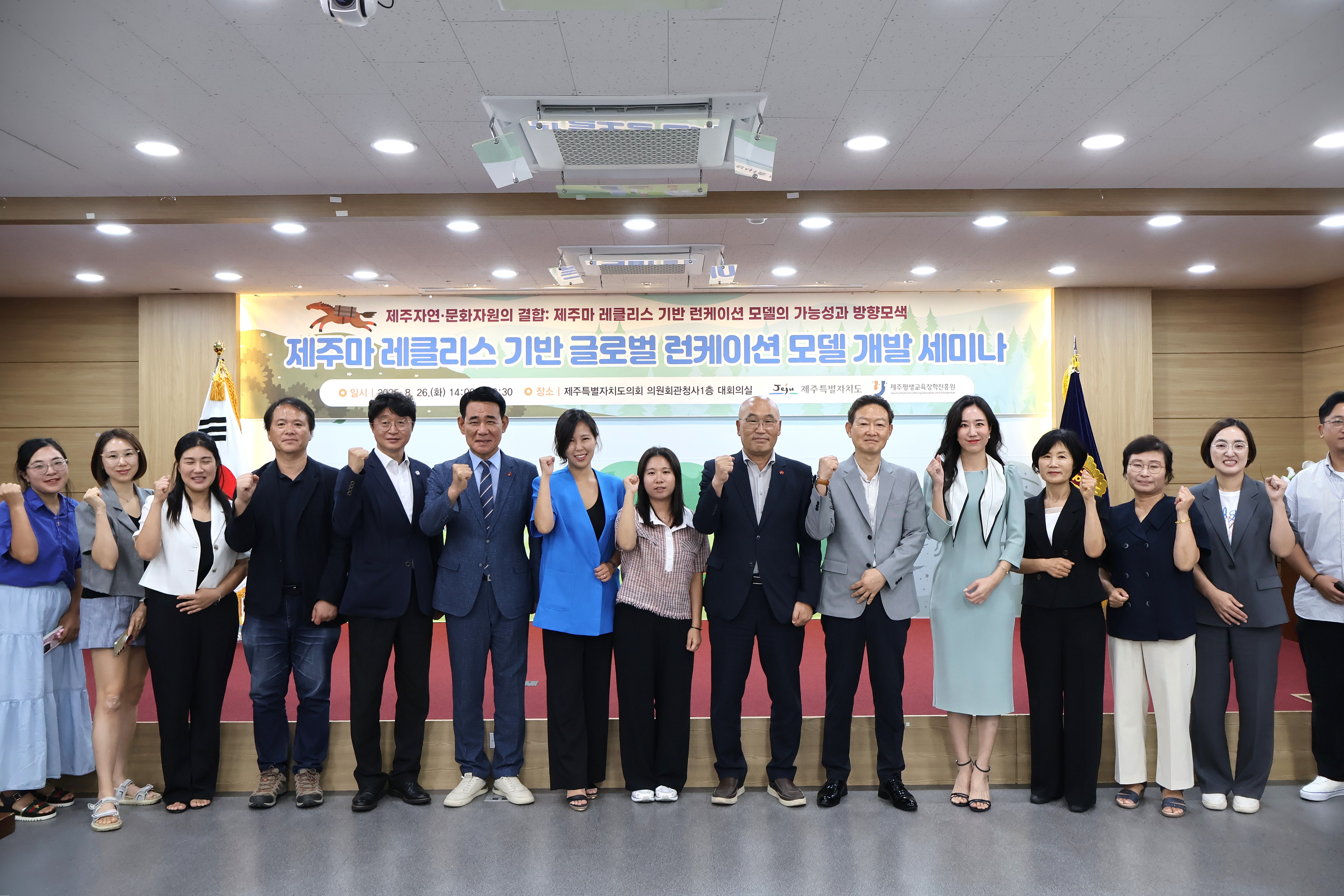 ○ (일시) 2025. 8. 26.(화) 14:00~16:30 ○ (장소) 제주특별자치도의회 의원회관청사 1층, 대회의실 ○ (주제) 제주 자연·문화 자원의 결합 : 제주마 레클리스 기반 런케이션 모델의 가능성과 방향 모색 |